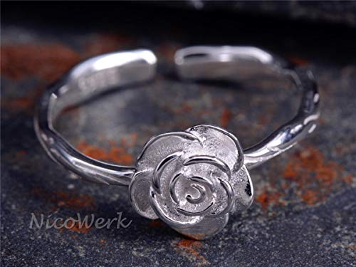 NicoWerk SRI419 - Anello da donna in argento Sterling 925, a forma di rosa, motivo floreale