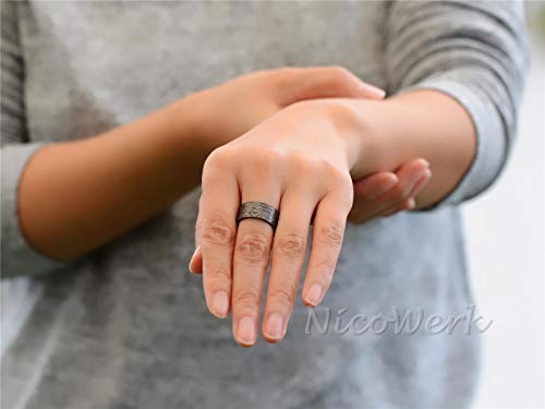 NicoWerk SRI621 Anello da donna a fascia in argento Sterling 925, nero, largo e stretto regolabile, finitura decorata, aperto