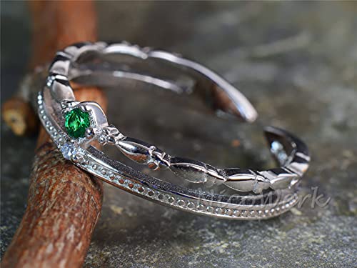 NicoWerk SRI710 - Anello da donna semplice, in argento sterling 925, a doppia fila, con pietra verde e zirconi, regolabile, aperto