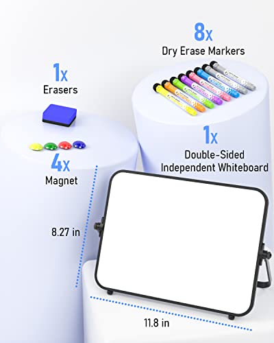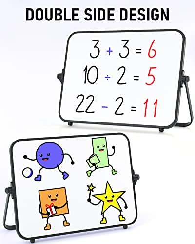 Nicpro Lavagna bianca bianca cancellabile a secco, formato A4, con supporto antiscivolo, 21x30 cm, doppia lavagna magnetica da scrivania, cavalletto portatile, per bambini e studenti in classe