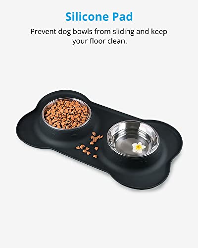 NICREW Ciotole per Cani in Acciaio Inossidabile, Ciotole per Gatti Antiscivolo, Ciotole Cane con Tappetino in Silicone, Ciotole Gatto Anti Goccia