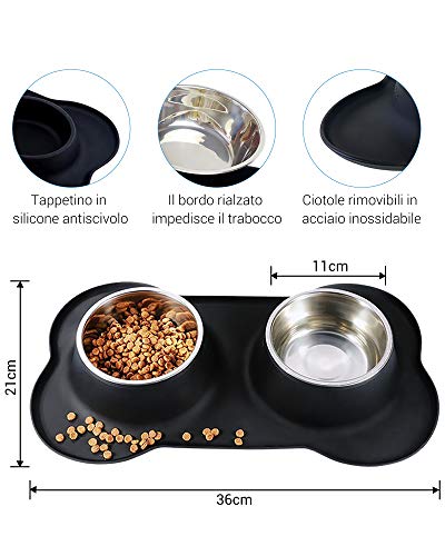 NICREW Ciotole per Cani e Gatti di Piccola Taglia, Doppia Ciotola in Acciaio Inossidabile Antiscivolo ed Anti Goccia, Ciotola Cane con Tappetino in Silicone