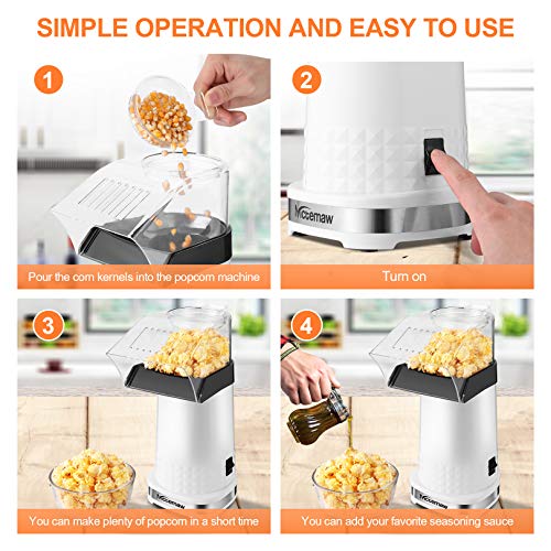 Nictemaw Macchina per popcorn 1200 W aria calda popcorn Maker senza grasso e olio, popcorn automatica per casa e in viaggio, bianco