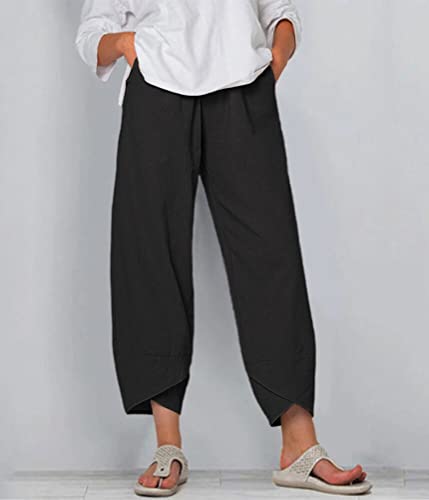 Nicticsi Donna Pantaloni Casual Vita Alta Larghi Vintage Pantalone Tinta Unita Pantaloni Dritti Estivi Home Abbigliamento A Nero XL