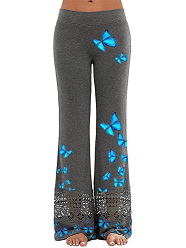 Nicticsi Pantalone da Donna Leggero Pantaloni Estivi a Vita Alta Casual Gamba Larga Palazzo Pantaloni Pantaloni Campana per Casa Yoga Fitness A Grigio Scuro M