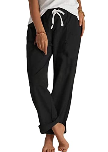 Nicticsi Pantaloni Donna Larghi Cotone Estate Vita Alta Gamba Larga Pantaloni per Yoga Dritti Pantaloni con Elastico Casual Elegante Tuta A Nero S