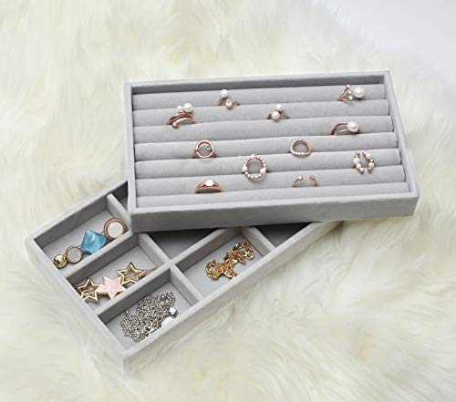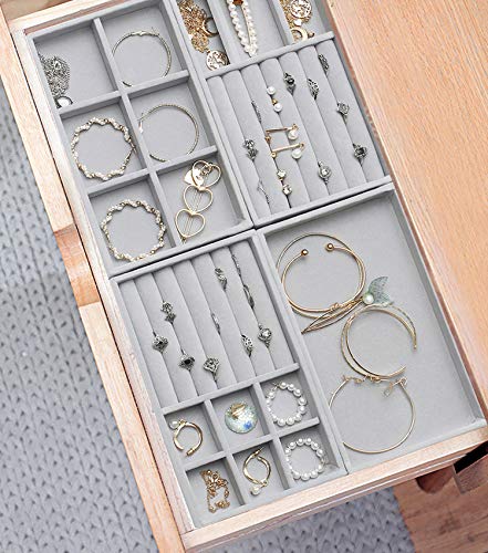 Nideen - Set di 8 vassoi portaoggetti per cassetti, impilabili e impilabili, per orecchini, collane, bracciali, anelli e anelli, confezione da 8 pezzi