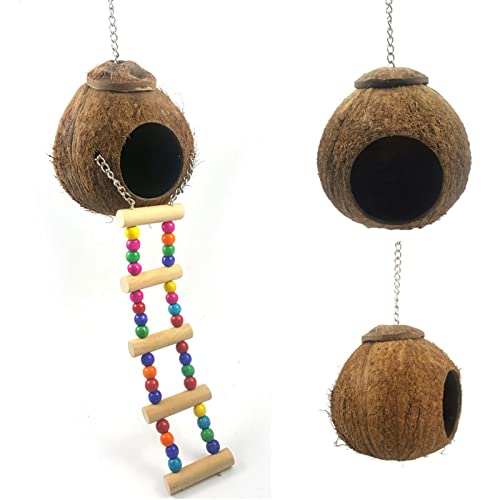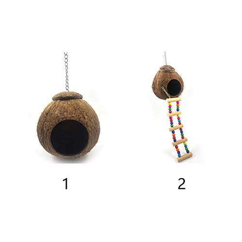 Nido di Uccello Strawnest con Scale, Guscio di Cocco Naturale Nido di Uccello casa capanna Gabbia Alimentatore per pappagalli Animali Domestici Forniture per parrocchetto, Canarino Finch Cage(2)