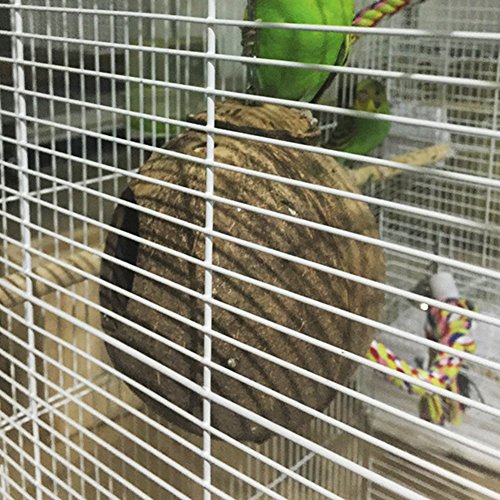 La gabbia per capanne in guscio di cocco naturale per pappagalli e parrocchetti è un rifugio divertente da cui il tuo uccello può arrampicarsi dentro e fuori.