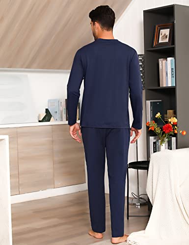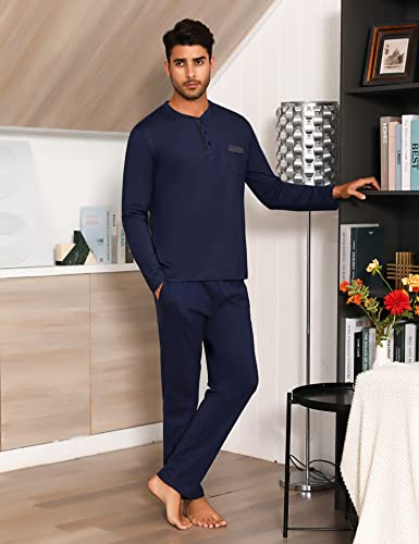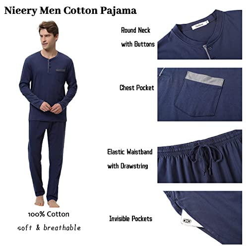 Nieery Pigiama Uomo Lungo in Cotone, Set Pigiama da Uomo Camicia a Maniche Lunghe e Pantaloni Lounge con Tasche Morbido e Confortevole S-XXL (Navy Blu, M)
