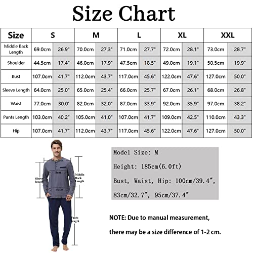 【Dimensioni】Pigiami uomo cotone lunghi S-XXL è disponibile. Si prega di misurare te stesso in base alle immagini settimo sinistra o la descrizione prima di ordinare per assicurarsi di ottenere la giusta dimensione.
