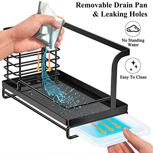 Nieifi Organizer Cucina, Porta Spugna Cucina Lavello in Acciaio Inox 304 con Vaschetta Raccogli, Nero, 21 * 12 * 12CM