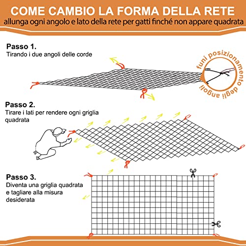 【MATERIALE AD ALTA RESISTENZA】: Rispetto alla normale rete per gatti tessuta da 8 fili di PE sul mercato, la nostra rete per gatti è strettamente intrecciata da 12 fili di PE di alta qualità e 1 filo di acciaio inossidabile, più durevole e resistente ai morsi;