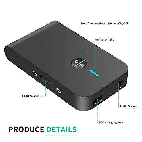 NIERBO Adattatore Bluetooth, Auto Bluetooth 5.0 Ricevitore Trasmettitore Bluetooth 3.5mm Jack, Trasmettitore Bluetooth Cuffie Adattatore Bluetooth Headphone Autoradio PC PS4 TV
