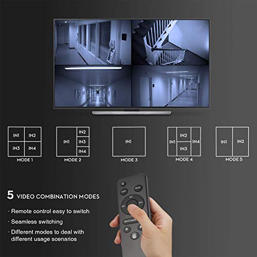 【Multivisore 4 ingressi HDMI 1 uscita】Lo switch HDMI multi-funzione può fondere le immagini di diversi schermi su uno schermo, o semplicemente mostrare un'immagine selezionata da uno schermo. Come mirino multiplo, ci sono 5 modalità, 1:1:1 / 3:1:1 / 1 / 2:1:1:2 / 1:1. Il formato di uscita audio è compatibile con PCM2.0.