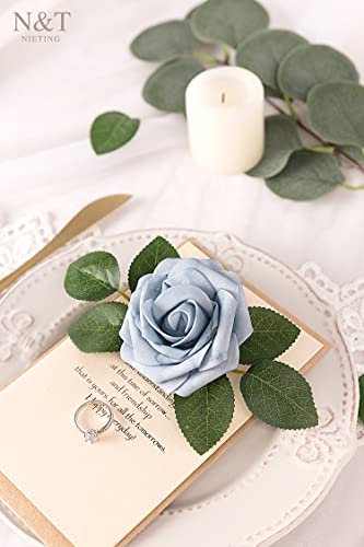 N&T NIETING Fiori Artificiali, Rosa Artificiali 25 Pezzi Schiuma Teste di Rose Finte Aspetto Reale con Foglia e Gambo Regolabile per DIY Matrimoni Mazzi Nuziale Festa Casa Stanza Decorazioni ()