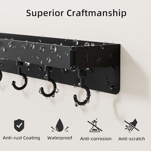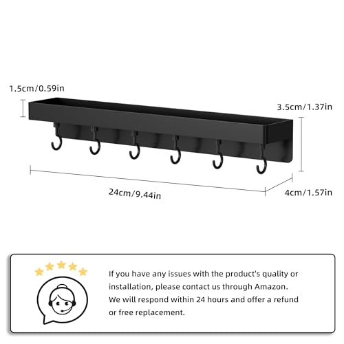 Niffgaff Portachiavi nero, portachiavi con ripiano e 6 ganci, senza foratura, montaggio a parete, per riporre le chiavi all'ingresso, appendere posate da cucina