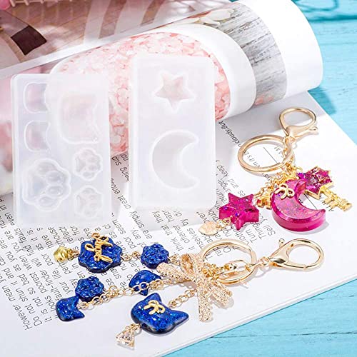 Nifocc - Stampo in silicone per gioielli, collane, orecchini, ciondoli in resina epossidica, a forma di zampa di gatto, cuori, stelle, luna, conchiglia, per fai da te, 5 pezzi