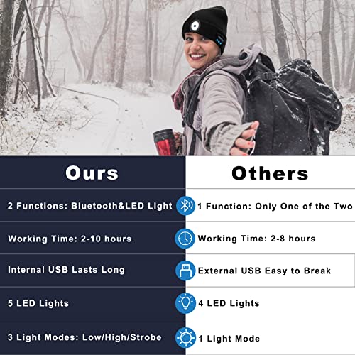 【Garanzia post-vendita】Questo berretto Bluetooth con luce è un fantastico gadget per le persone che amano attività all'aperto o al chiuso come sci, pattinaggio, ciclismo, jogging, ecc. Se avete domande sui nostri prodotti, non esitate a contattarci prima o dopo l'acquisto. Risponderemo entro 24 ore e vi forniremo un servizio eccellente!