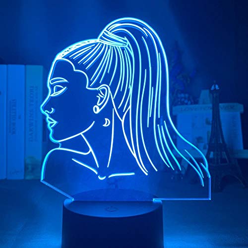 3D Night Light Singer Ariana Grande per fan della camera da letto Decorazione Atmosphere Light Touch Sensor LED Colore Cambio Scrivania Lampada-16 colori con telecomando