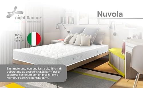 Night & more materassi italiani- Materasso Nuvola, Poliuretano, Singolo
