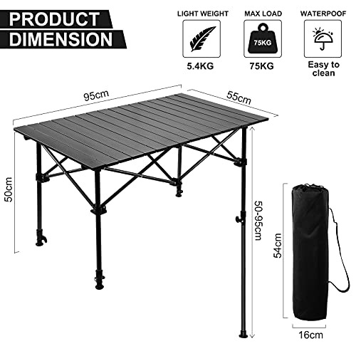 Night Cat Tavolo Pieghevole da Campeggio Giardino in Altezza Tavolo Arrotolabile Alluminio Regolabile Portatile da Esterno 50-95cm per Pesca Giardino 75kg