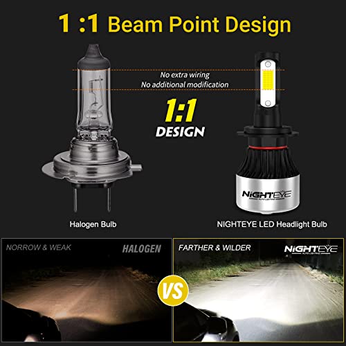 ★ 【Motivo a fascio ottimale】 Illuminazione automatica notturna H7 La lampadina a LED adotta un collare di montaggio regolabile a 360 gradi, può essere evitata il ghosting per ottenere un motivo a fascio perfetto. NIGHTEYE H7 LED Faro offre un fascio di luce focalizzato perfetto, senza macchie scure o aree ombreggiate, nessun accecante altro conducente, garantendo la sicurezza notturna.