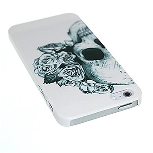 NightKid custodia Estetica del cranio e del fiore pallido (iPhone 6S Plus iPhone 6S iPhone 6 Plus iPhone 6 iPhone 5C iPhone 5/5S iPhone 4/4S )(iPhone 6/4.7,Bianco)
