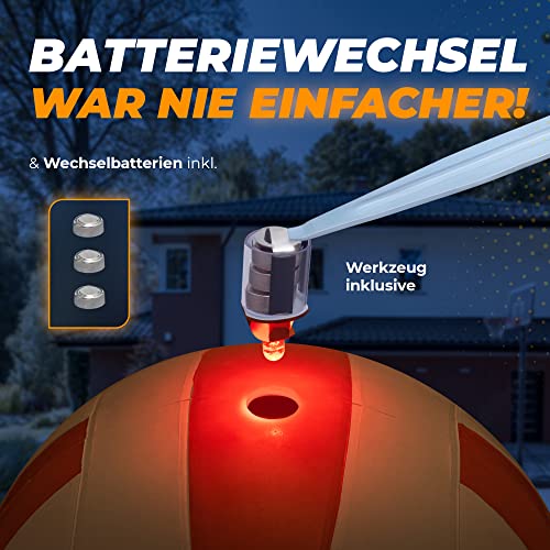 LED attivati con sensore: sbalza la palla (variante LB20-EU) si illuminano all'interno della palla due LED. Dopo 30 secondi senza vibrazioni, si spengono automaticamente. Le batterie durano per circa 30 ore. Tempo di illuminazione