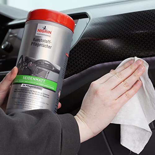 NIGRIN Confezione da 36 panni in plastica opaca per superfici in plastica e vinile all'interno del veicolo
