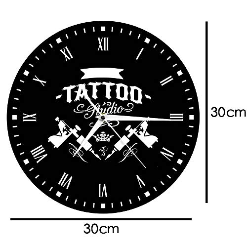 NIGU Orologi Da Cucina Muro Grande Orologi Da Parete Tattoo Studio Macchina Moderno Orologio Da Parete Tatuaggio Salone Negozio Decorazione Nero Orologio Rotondo Hipster Uomini Tattooist Regalo