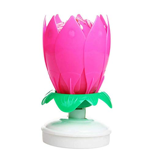 Nihexo - Torta di compleanno rotante a forma di loto con fiore musicale musicale con musica magica, compleanno musicale, decorazione per torta di compleanno (3 pezzi)