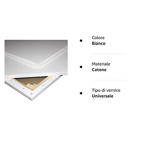 Niik Tele Tela Pittorica in Cotone Trama Media 60 x 120 x 1,7 cm con Graffe Posteriori da Dipingere per Pittori Pittura Telaio Telato alla Francese, Bianco