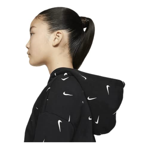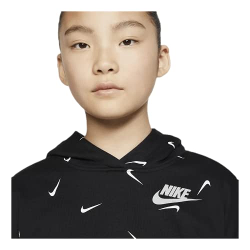 Nike Crop AOP - Felpa con Cappuccio per Bambini, Unisex, Unisex - Bambini, Felpa con Cappuccio per Bambini, CZ2566, Nero/Bianco/Grigio Fumo, S