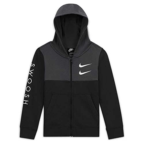 Nike Felpa da Ragazzo con Cappuccio e Full Zip Swoosh Nera Taglia S cod CU9206-010 -9B