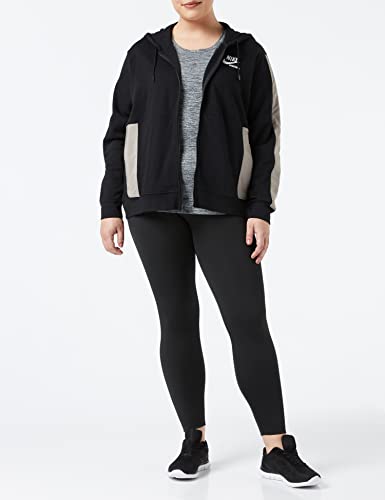 Nike W NSW FLC FZ Hoodie HTG Felpa con Cappuccio, Black/Moon Fossil/White, S Donna
