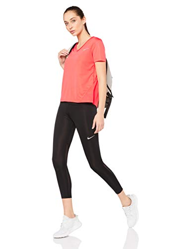 Nike Miler Top Vneck, T-Shirt Donna, Ember Glow/Reflective Silv, L