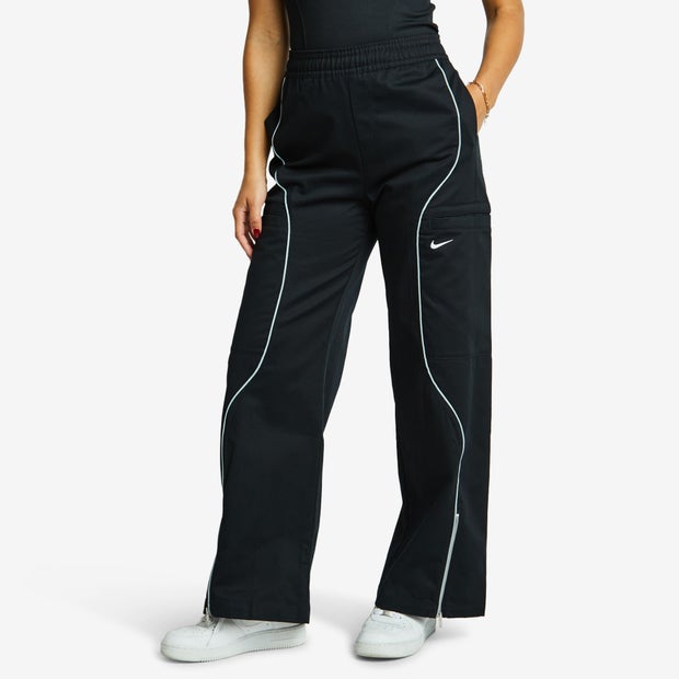 The contrasting piping and wide-leg fit transform these trousers into a statement piece. The sturdy twill fabric gives you structure while still moving with you. But it's the functional details that really set these trousers apart, like the zipped hem and cargo pockets. Benefits The twill fabric is lightweight and durable. The elastic waistband with a hidden drawcord offers adjustable comfort. The zips on the hem let you show off your kicks. The side pockets and cargo pockets ensure you have plenty of storage for keys, a phone and cold hands. Product details Body: 100% Cotton. Pocket Bags: 100% Polyester Machine wash Imported