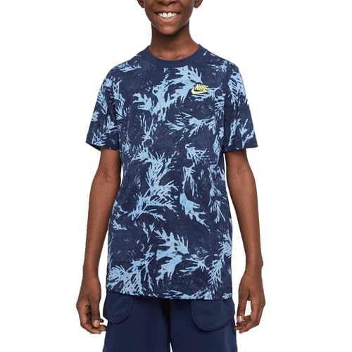 Nike T-Shirt da Ragazzo Camo Leaf AOP Blu Taglia XL (158-170 CM) cod DQ3857-410