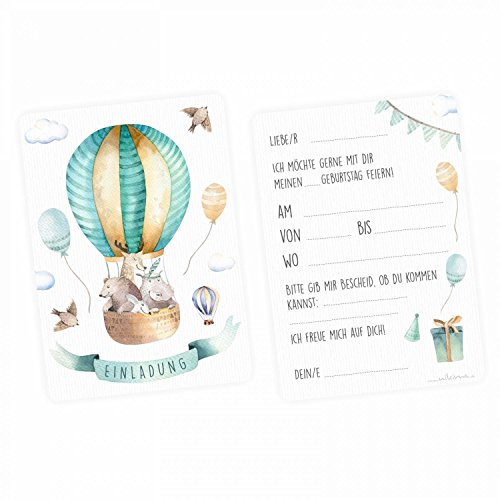 Nikima - 5 biglietti di invito amici nel palloncino con 5 buste trasparenti per bambini, per compleanno, ragazza, invito, festa, palloncino, regalo
