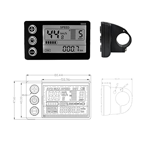 NIKJEBDF 24V-36V-48V Display LCD E-Bike Digital Meterm, conversione bici n. 2/UART schermo bianco e nero orizzontale LCD Meter connettore impermeabile