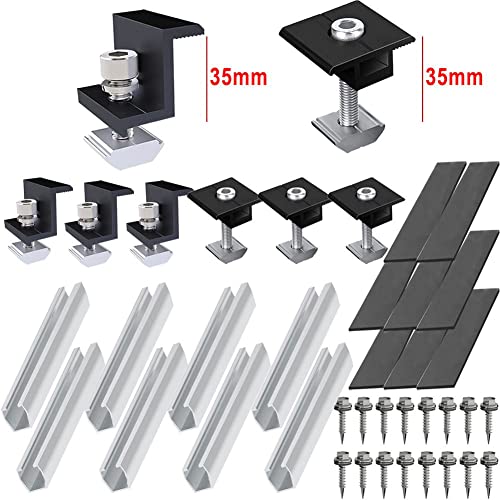 NIKJEBDF Kit di supporto per modulo solare, 35 mm, pannelli solari, sistema di fissaggio in alluminio, lamiera trapezoidale, guida di fissaggio PV, supporto per centrali da balcone, pannello solare