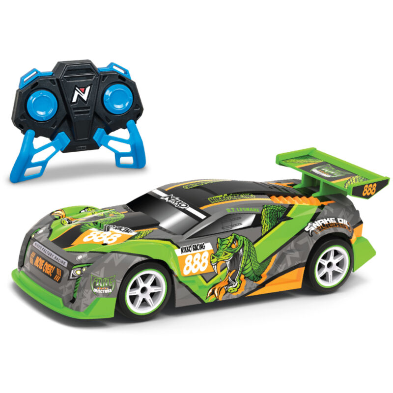 Senti la velocità e il controllo di questa leggera auto da corsa Nikko in scala 1:16. I materiali robusti e la tecnologia di precisione di questa macchina da corsa ti mettono al posto di guida di un'auto da corsa perfettamente funzionante. Il trasmettitore da 2,4 GHz garantisce una risposta immediata e puoi gareggiare con fino a 10 altre auto contemporaneamente. L'auto da corsa ha una portata di 40 m. Il design di qualità dell'auto può resistere a qualsiasi prova a cui la sottoponi. È un Nikko! Velocità massima 14 km orari. Misura circa 28 cm. Il trasmettitore utilizza 3 batterie AAA (non incluse) e il veicolo utilizza 4 batterie AA (non incluse). Da 6 anni.