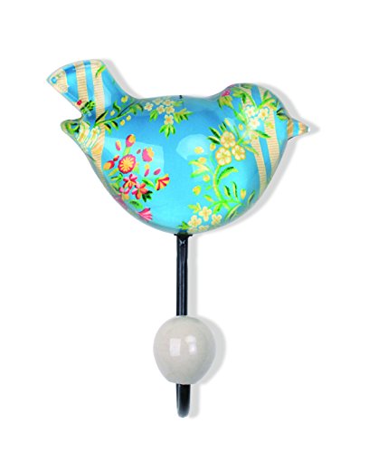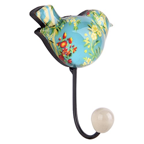 NIKKY HOME Appendiabiti da Parete con Singolo gancio Attaccapanni a Muro Uccello per Vestito Asciugamano Cappello in Metallo e Vetro Azzurro