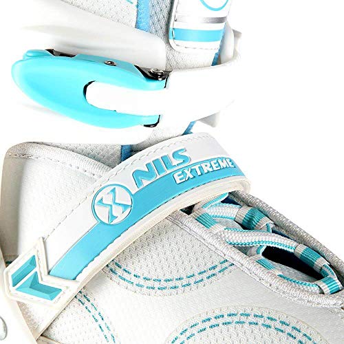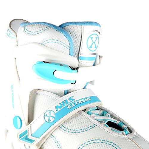 NILS NA11201 - Pattini in linea da donna, alta velocità, regolabili, ABEC7, 90/100 mm, 82A, bianco/blu, 39-42