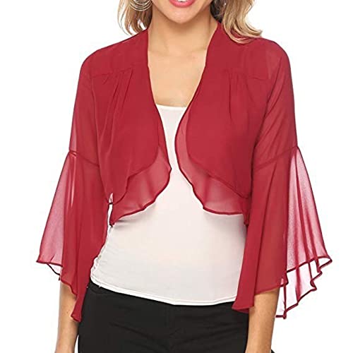 Nimiya Coprispalle Donna Bolero Cardigan in Chiffon da Donna Coprispalle Estivo Elegante Crop Top Maniche 3/4 Donna Matrimonio Sposa Damigella Giacca Corta Copricostume Borgogna A 3XL