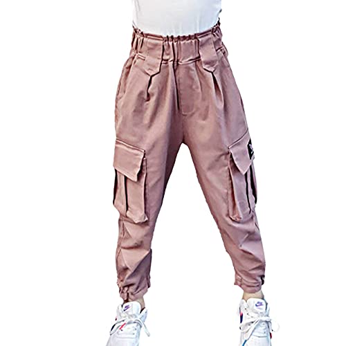 Nimiya Pantaloni Bambina Pantaloni Cargo Lunghi Tinta Unita Pantaloni Sportivi Jogging Ciclismo Corsa Ragazza Pantaloni Larghi Hip Hop Ballo di Strada Pantalone Tuta Casual Rosa 2-3 Anni
