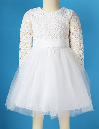 Nimiya Vestito da Battesimo Bambina Neonata Abito Elegante Damigella d'Onore a Maniche Lunghe Vestiti da Cerimonia Comunione Bimba Abiti da Matrimonio Nuziale Nozze Avorio 12-18 Mesi