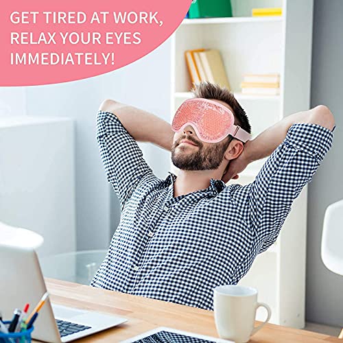 Nimomo Maschera per Gli Occhi, Maschera per Gli Occhi rinfrescante Maschera per Gli Occhi in Gel di Ghiaccio Riutilizzabile con Supporto in Peluche per emicrania, gonfiore di Testa(Rosa)