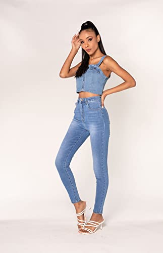 Nina Carter P190 Jeans da donna Skinny Fit Extra High Waist Jeans Used-Look, Azzurro (P190-5), L